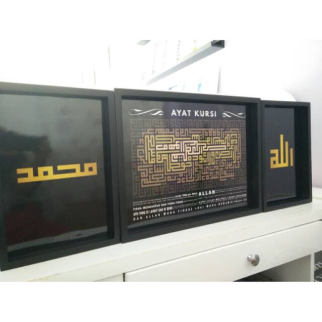 Banting Harga Perlengkapan di Kabupaten Muaro Jambi Hiasan Dinding 1 Set Kaligrafi Ayat Kursi Dan Alla Muhammad Black Gold dari Tatomi Walldecor Kota Tangerang