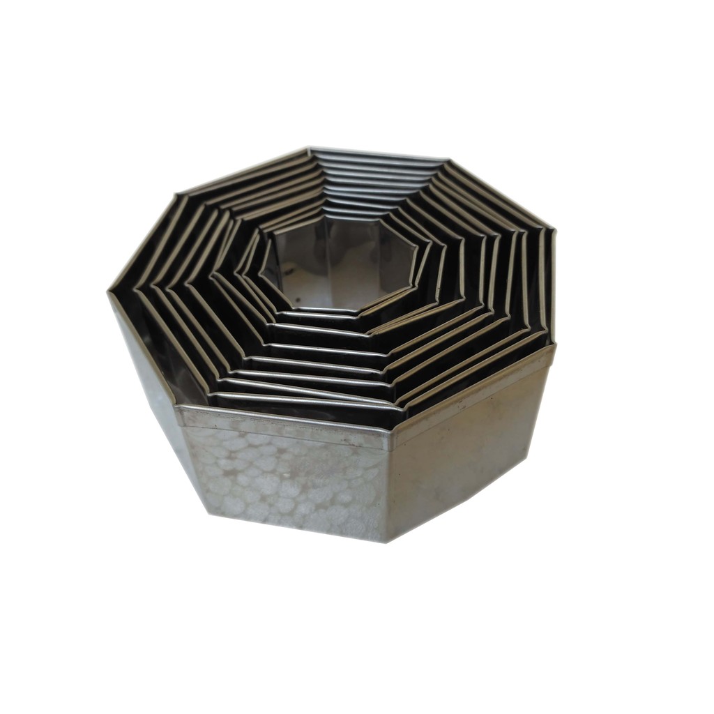 Ring 1 Set, yang berfungsi untuk membentuk adonan menjadi bentuk segi enam beraneka macam ukuran. Cetakan berisi 10 pcs dengan berbagai ukuran, terbuat dari stainless steel, tinggi 4 cm, ukuran yang paling besar 10 cm dan ukuran yang paling kecil 3