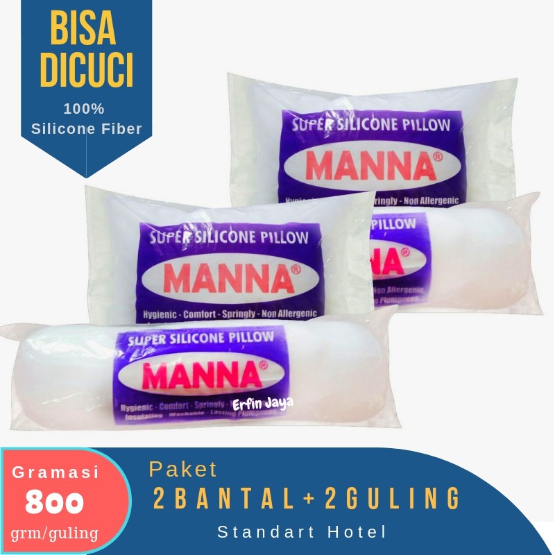 Gramasi silicone fibernya tinggi 700grm/bantal dan 800grm/guling, Bisa dibandingkan dengan produk lain yang rata rata berat isinya hanya 500-600grm/bantal.Jadi bantal atau guling MANNA akan terasa bervolume dan tidak mudah kempis
