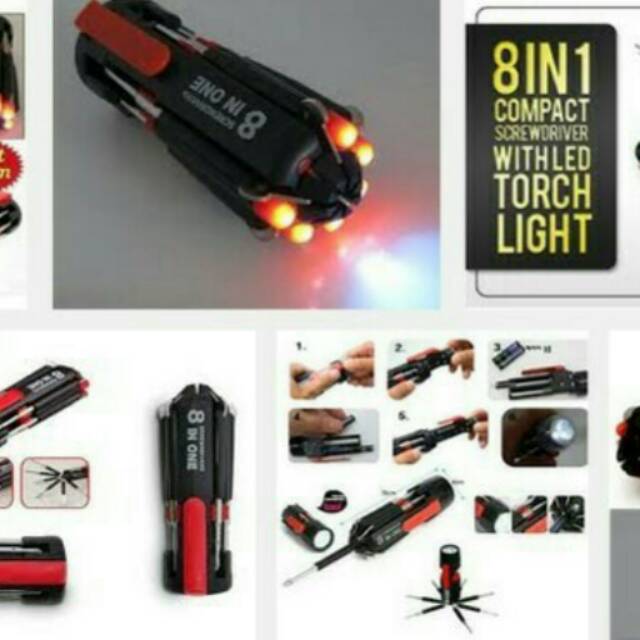 Obeng Multifungsi dilengkapi dengan 8 Jenis Obeng berbagai ukuran disertai dengan Lampu LED yang Terang Benderang !!