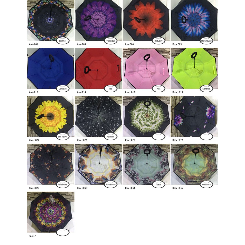 Perhatikan warna sarung sesuai dengan warna dalam payung, karena payung ini terbalik maka warna yang terlihat di luar tidak sesuai dengan warna payung pas dikembangkan.