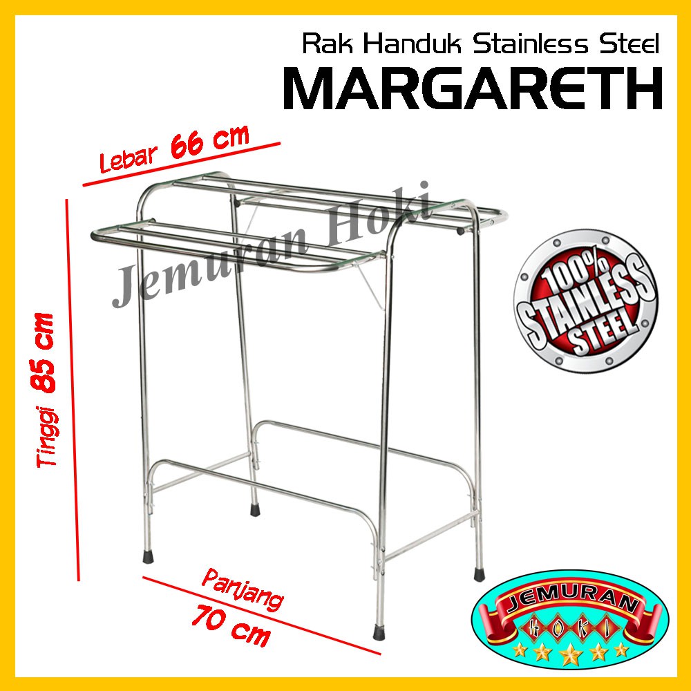 Rak handuk Stainless Steel TERMURAH. Dibuat dari 100% bahan Stainless Steel berkualitas tinggi yang kuat, kokoh, dan anti karat. Jemuran stainless steel ini memiliki beberapa keunggulan dibandingkan dengan bahan aluminium, antara lain bahannya lebih keras & kuat, warnanya pun jauh lebih mengkilap, sehingga penampilannya jauh lebih memukau. Dibuat menggunakan bahan stainless steel ASLI (bukan besi chrom), untuk memastikannya tempelkan saja magnet, kalau stainless steel yang asli pasti tidak akan menempel. Sudah saatnya mulai beralih ke jemuran stainless steel.