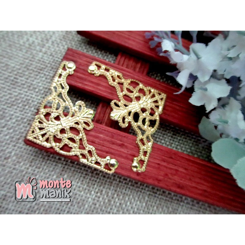 lempengan atau plat sudut ini bisa digunakan untuk penampang bros manik, untuk pemanis box hantaran, sovenir, hiasan pada tas dan dompet handmade ataupun kreasi scraap book.