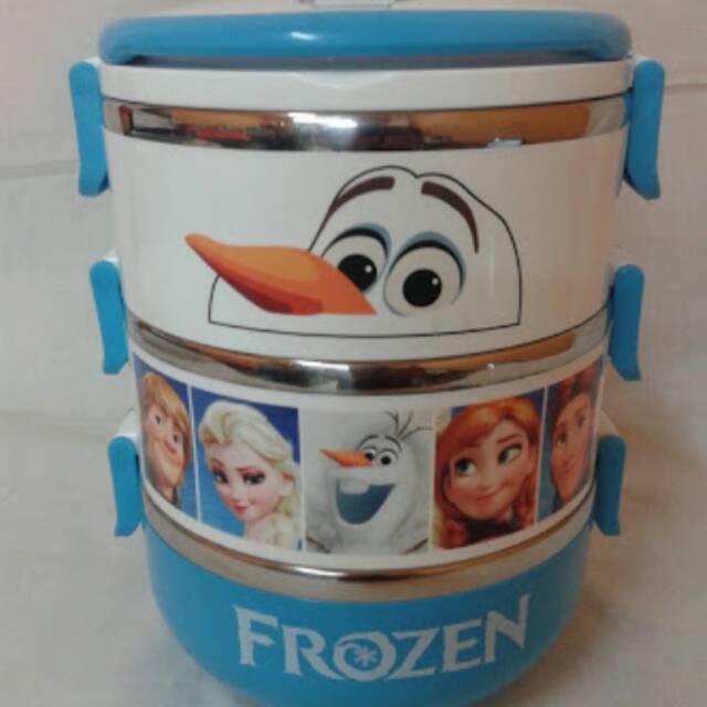 Baru... Lunch Box Rantang Stainless steel bulat susun 3 karakter kartun doraemon frozen. Cantik, imut, lucu. Bagian dalam terbuat dari stainless sehingga aman bagi makanan dan mudah dibersihkan. Bagian luar dari bahan plastik berkualitas dan tidak mudah pecah.Dengan silikon sealer pada penutup sehingga dapat menjaga suhu dan makanan tidak tumpah.
