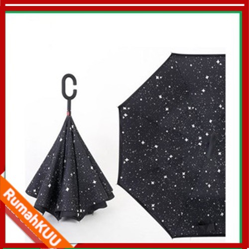 Payung Super Cool dan Unik dengan 2 lapisan layer, Model Kekininan Inovasi 2016, tidak akan membuat basah bagian dalam mobil/ruangan saat keluar masuk mobil/ruangan disaat hujan. Payung ini Merupakan Payung Hybrid yaitu kombinasi antara Kazbrella dan PhoneBrella, dengan rangka payung yang terbalik dan design elegan (perhatikan gambar).