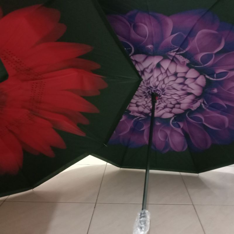 Payung terbalik, lagi ngetren nieh, dengan model bukaannya yang terbalik, membuat air hujan pada payung unik ini tidak akan mengotori ruangan atau mobilmu, karena ketika dilipat, sisi basahnya malah dibagian dalam
